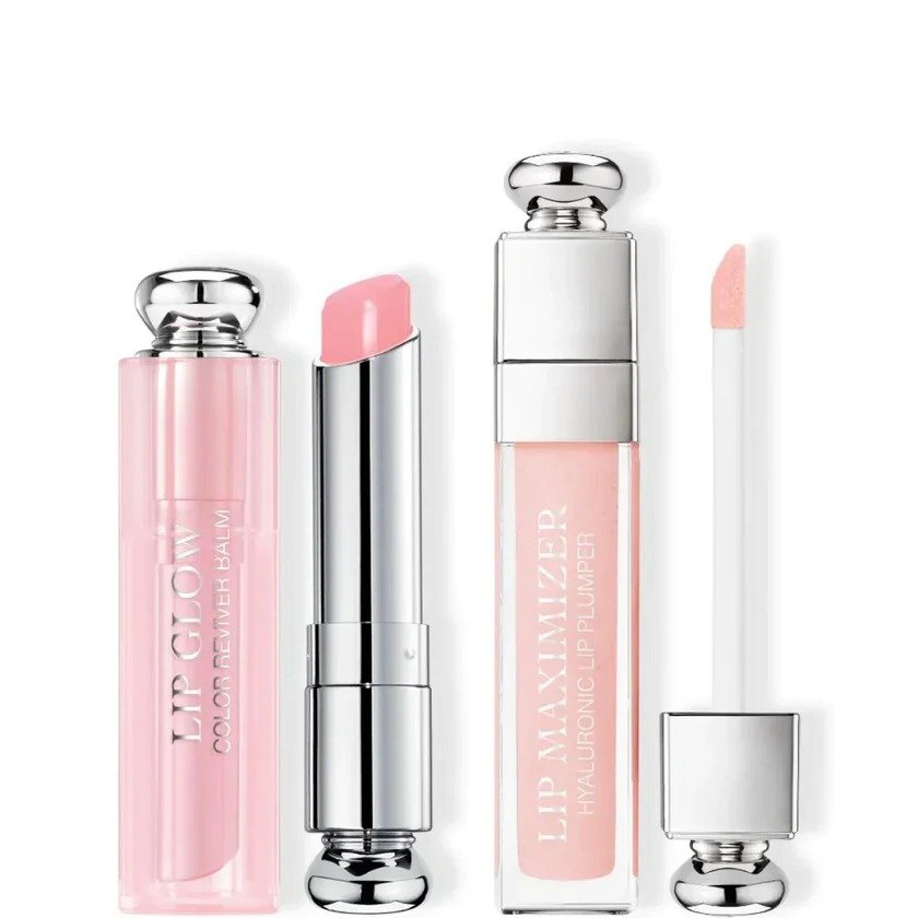 Discover a duo travel set featuring the Dior Addict Lip Glow lip balm that hydrates lips and enhances lips’ natural color, and the Dior Addict Lip Maximizer gloss that hydrates, smooths and replumps lips.The duo set includes:- Dior Addict Lip Glow, shade 001 Pink. The Dior natural color-reviving lip balm.- Dior Addict Lip Maximizer, shade 001 Pink. The Dior maximum hydration lip-plumper gloss with an instant volume effect and long-lasting wear.