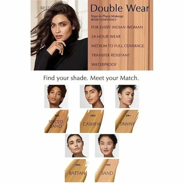 Wear confidence. Double Wear is matte foundation that looks fresh, flawless and natural-liquid foundation that feels lightweight and so comfortable, you won’t believe it’s super long wear. No touch ups needed. In a wide range of shades that flatters all. Unifies uneven skin tone and covers imperfections-buildable, medium to full coverage foundation. Our best foundation for long wear, Double Wear is the makeup that keeps up-no matter where your day takes you. Apply once and don’t think twice.