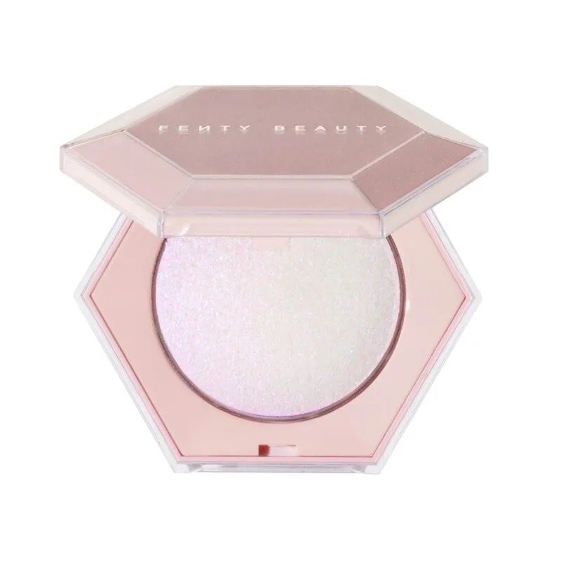 Ice yourself in insane diamond-dusted sparkle. Diamond Bomb takes glitter to a whole new extreme in a shimmering 3D formula that’ll leave your face and body crystal-coated, the way only Rihanna knows how.Celebrate one glittering year of Fenty Beauty with this all-over sparkler that will make you look and feel like a million bucks. Diamond Bomb features a unique jelly-powder formula that’s bouncy, cool to the touch, and melts into skin like butter. This highlighter is loaded with 100% pure brilliance to create an all-glitz-no-grit finish that decks out every skin tone. Plus, all of this glittery goodness comes in a faceted jewel-like compact you’ll never want to put down.
