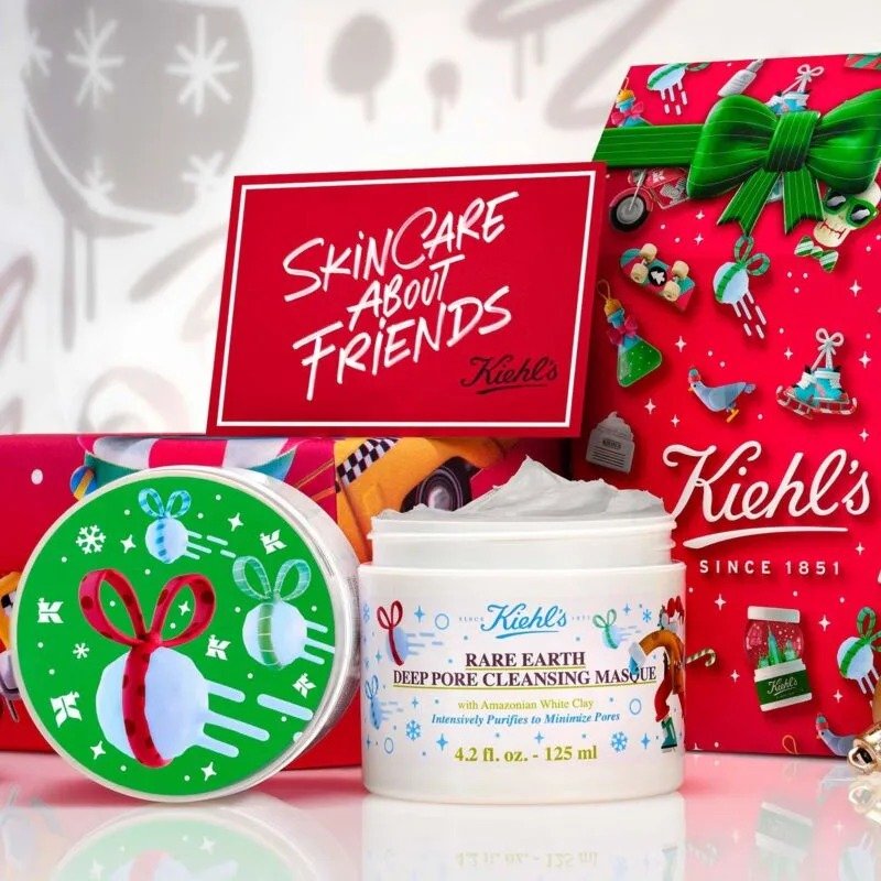 Gently purify and detoxify your skin with Kiehl’s limited edition pore cleansing mask featuring festive artwork by Made by Radio. Formulated with Fairly Traded Amazonian White Clay, this clay mask will help visibly reduce clogged pores and keep your skin smooth all holiday season long.